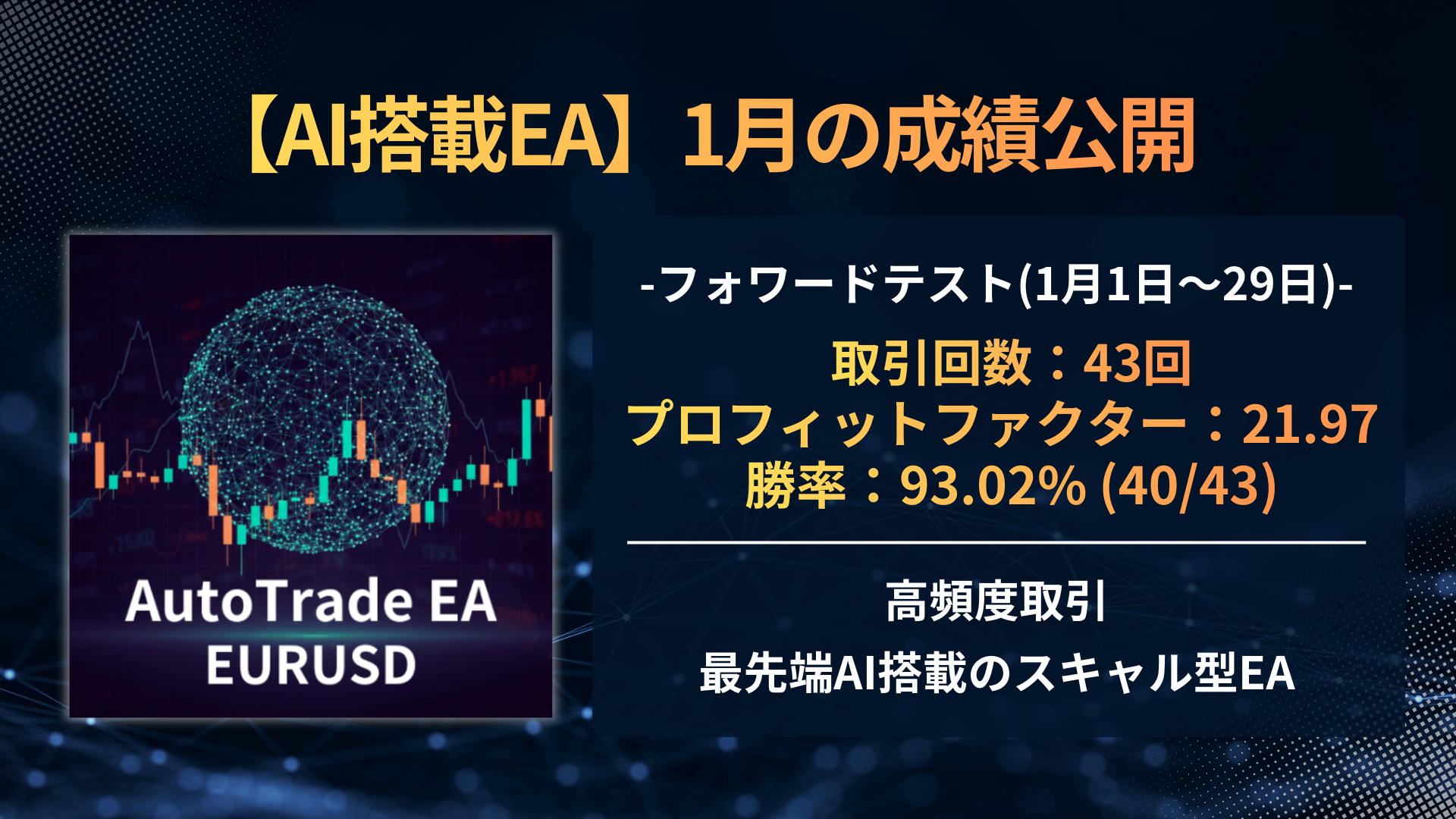 【1月成績速報】勝率93%・PF21超え!AI搭載EA「AutoTrade AI-EURUSD」が驚異的な安定感を記録
