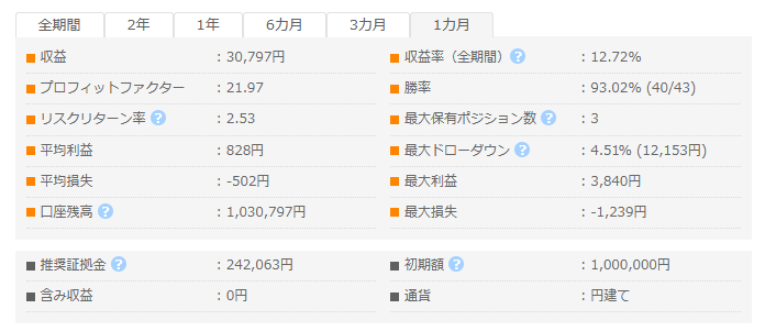 - 収益率:12.72%(※推奨証拠金比)
