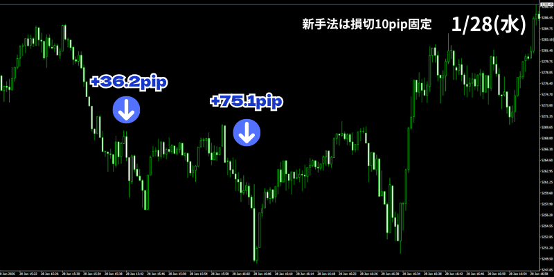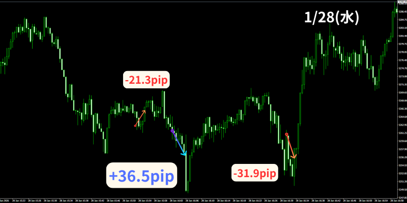 【1月28日】30秒足GOLD無裁量スキャルピング+【第2弾30秒足GOLDオートマチックFX】のトレード結果!