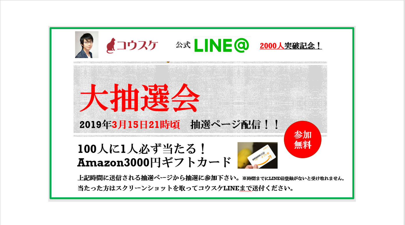 【大抽選会】Amzonカード3000円が当たる!”