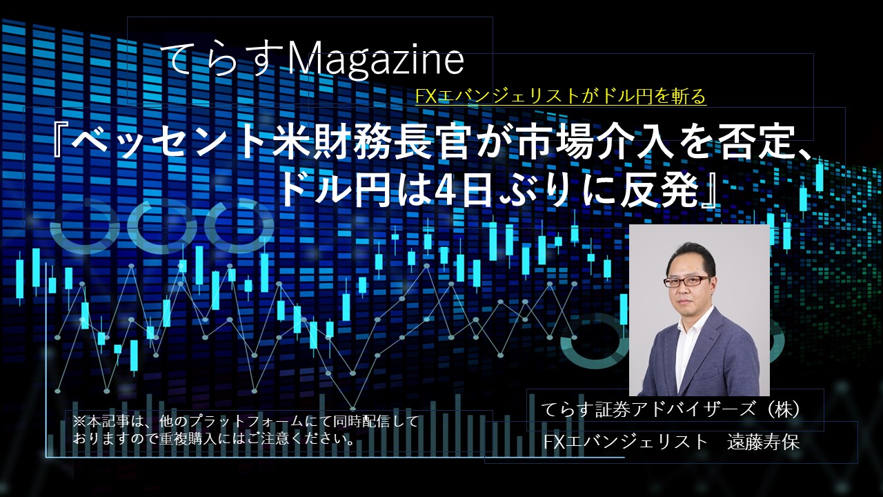 ベッセント米財務長官が市場介入を否定、ドル円は4日ぶりに反発。