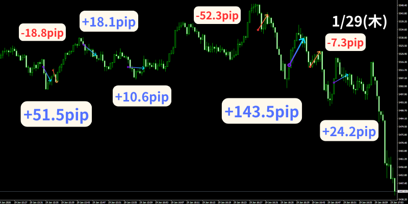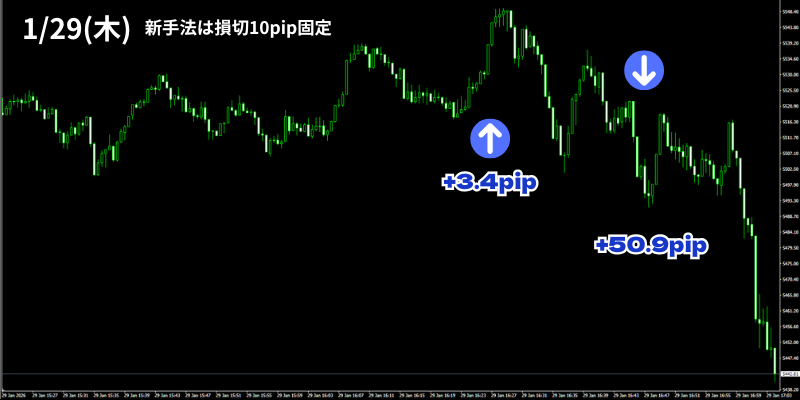 【1月29日】30秒足GOLD無裁量スキャルピング+【第2弾30秒足GOLDオートマチックFX】のトレード結果!