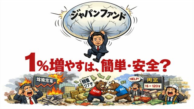 多くの場合、大口資金の流入は価格上昇を招き、その結果、既存の保有者による利益確定売りが増えます。結果として、期待したリターンが得られない、あるいはマイナスになる可能性すらあります。さらに、GPIFをはじめとする公的運用は、すでに世界的に見て効率性が高く、低リスクを重視した設計です。そこから「安定的に」1%を上乗せするのは、専門家の間でも極めて楽観的だとされています。
