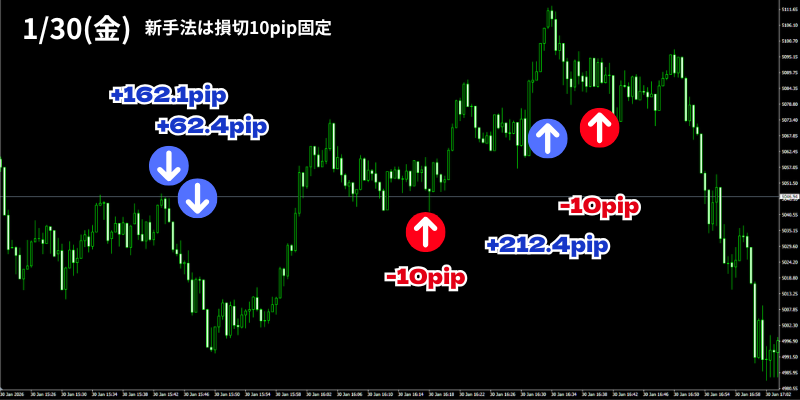 【1月30日】30秒足GOLD無裁量スキャルピング+【第2弾30秒足GOLDオートマチックFX】のトレード結果!