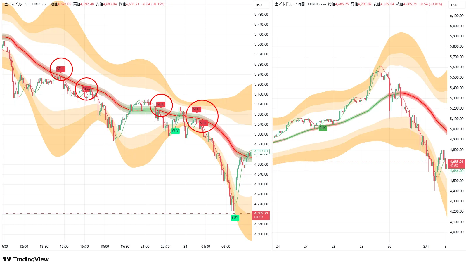 1時間足でのシグナルが出ていないのは残念でしたが、ボラが大きかったため5分足でも十分すぎると思います