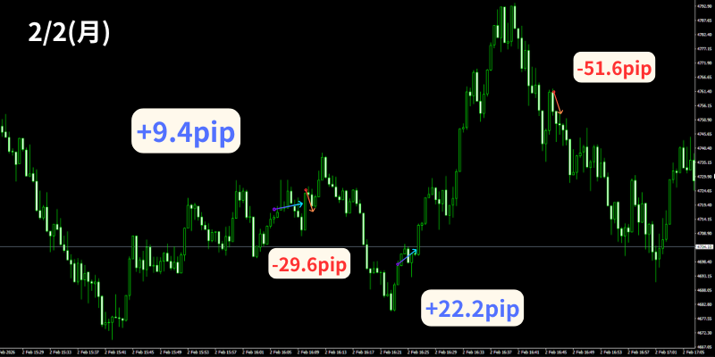 【2月2日】30秒足GOLD無裁量スキャルピング+【第2弾30秒足GOLDオートマチックFX】のトレード結果!