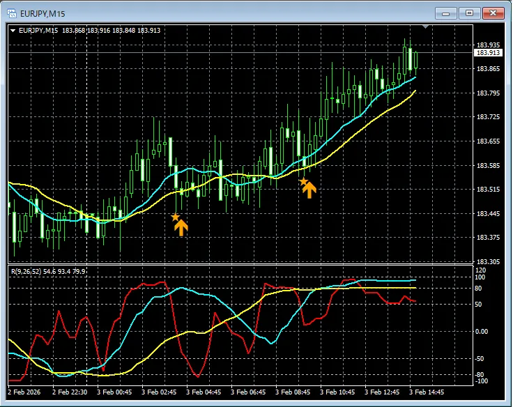 【RCIを極めて移動平均線フィルターで勝つ!!】ユーロ円 EURJPY 15分足 mBDSRのサイン