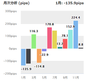 2018年の始めにアップデートを加えたことによりその後2018年後半は計789pipsを獲得しています。