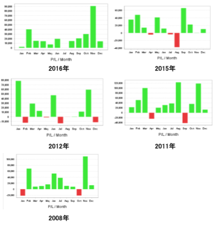 しかし、10年間マイナスの年はなく、2014年、2016年に至っては1年通して全てプラスでその月を終えています。