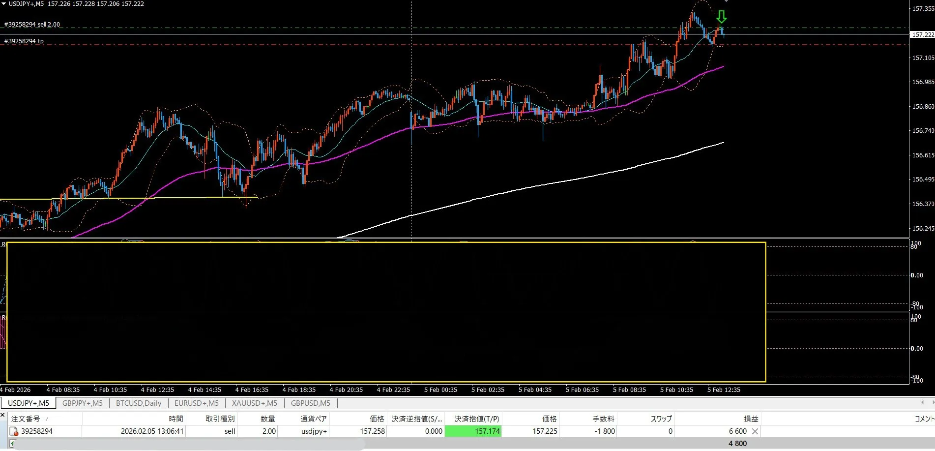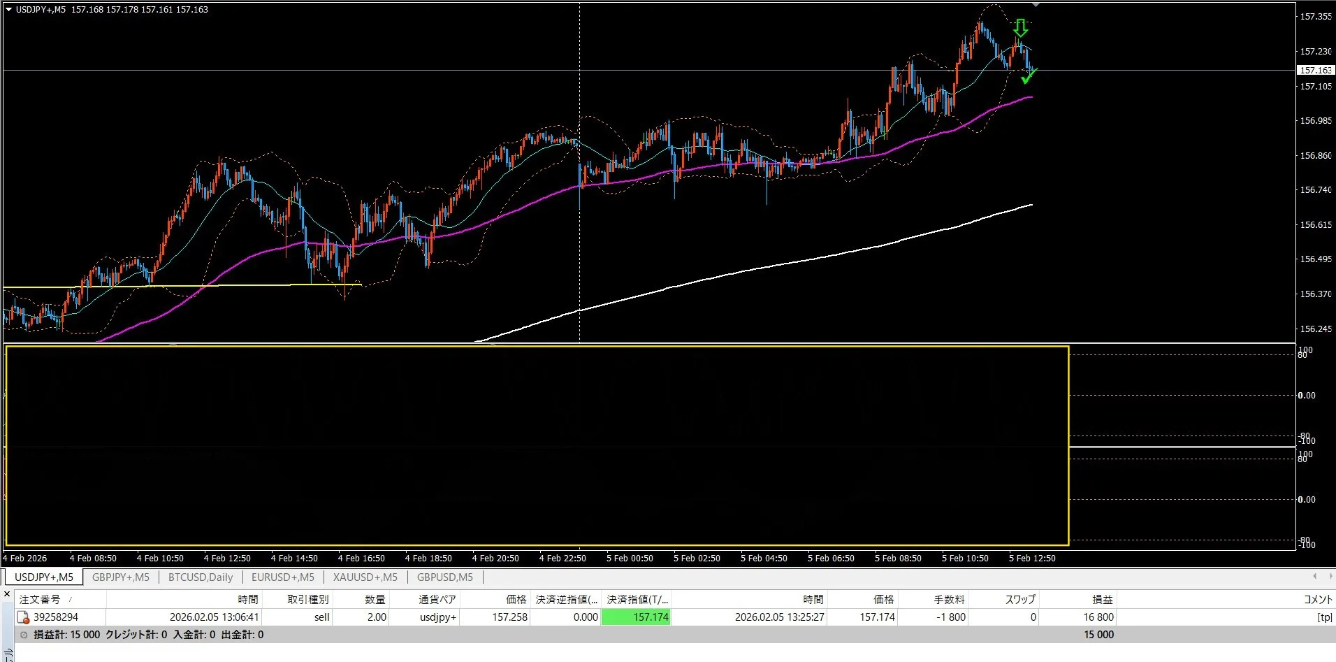伝説のメソッド 2026年2月5日 ドル円売り15000円