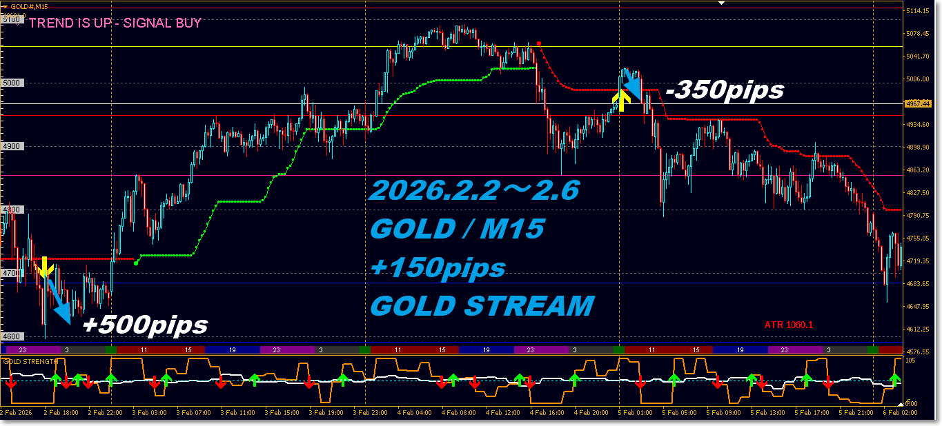 本画像に示された 2026年2月2日〜2月6日 GOLD STREAM のトレードは、