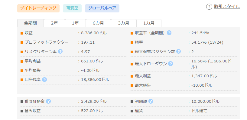 最大DD16.56%で+8,386ドル。設計思想はどこにある?