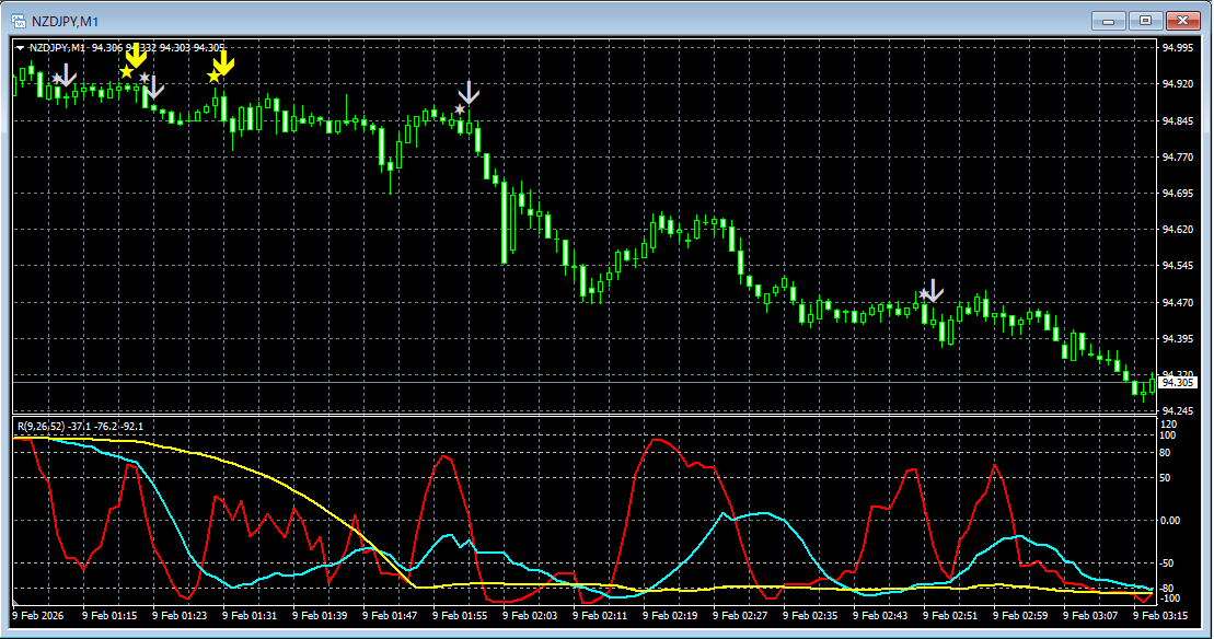 百戦錬磨 mBDSR(RCI2本フィルター)のサインとR1R2S2のサインの両方を活用する(105) キウイ円 NZDJPY 1分足