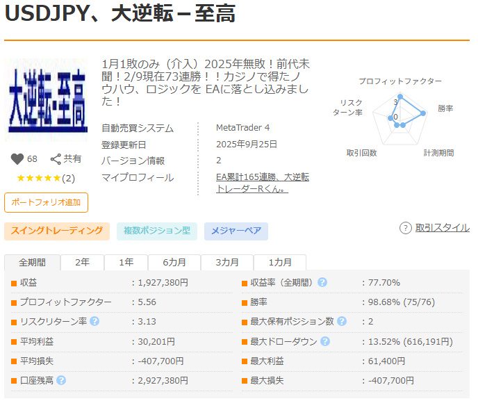 USDJPY、大逆転-至高 - システムトレード - 世界のトレード手法・ツールが集まるマーケットプレイス - GogoJungle