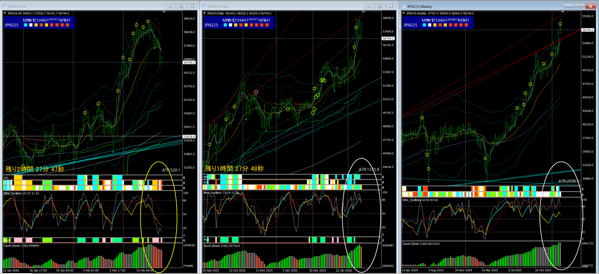 一方で、週足のMAXオシレーター、シンクロバンドは「中立」を示唆