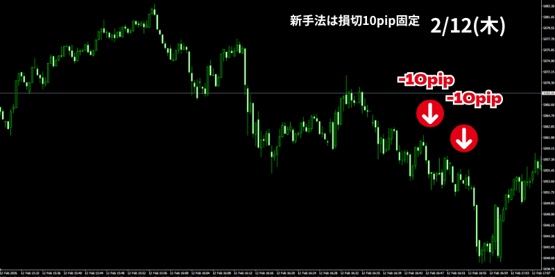 2月12日の「30秒足GOLDオートマチックFX」のトレード結果