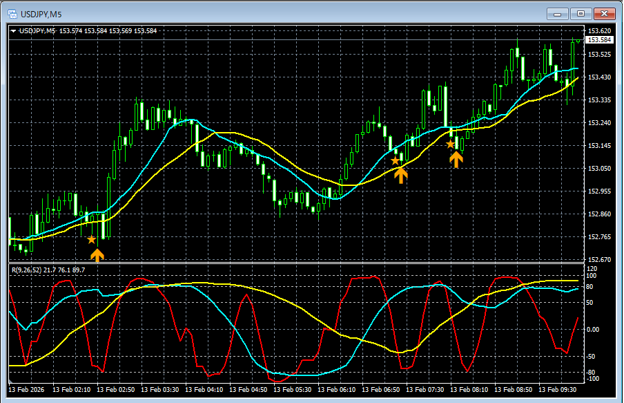 【RCIを極めて移動平均線フィルターで勝つ!!】本日のドル円 5分足チャートから mBDSRのサイン