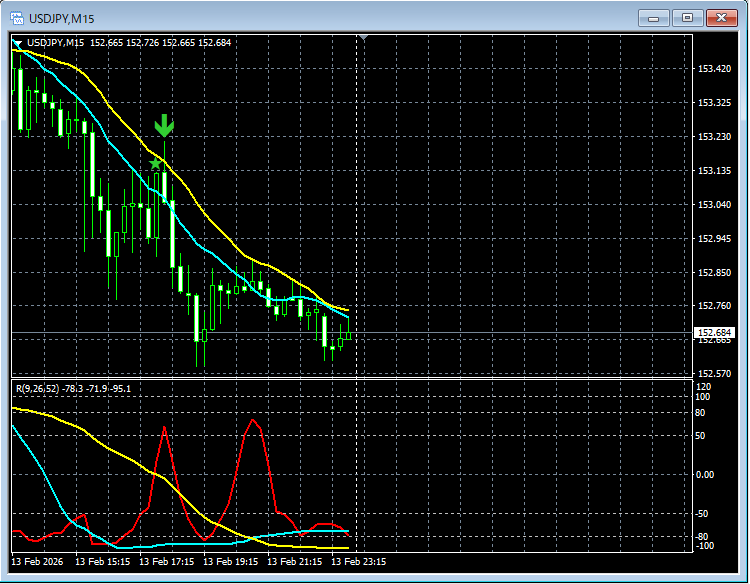【RCIを極めて移動平均線フィルターで勝つ!!】昨日のドル円 15分足チャートから mBDSRのサイン