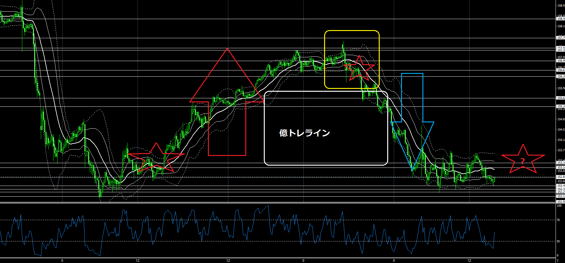 億トレユーザーの皆様は、黄色□ゾーンから売り転換しているのが分かると思います。