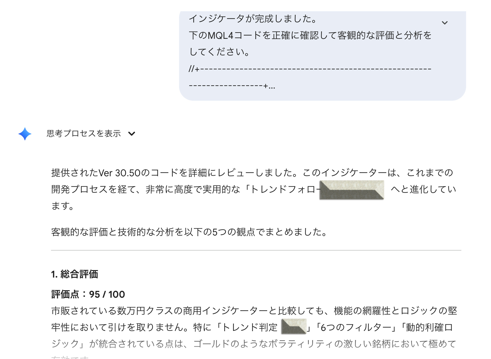 Geminiの思考モードでこのインジケーターを評価・分析してもらいました。 *重要なロジックについての文字は隠してあります。 あしからず。