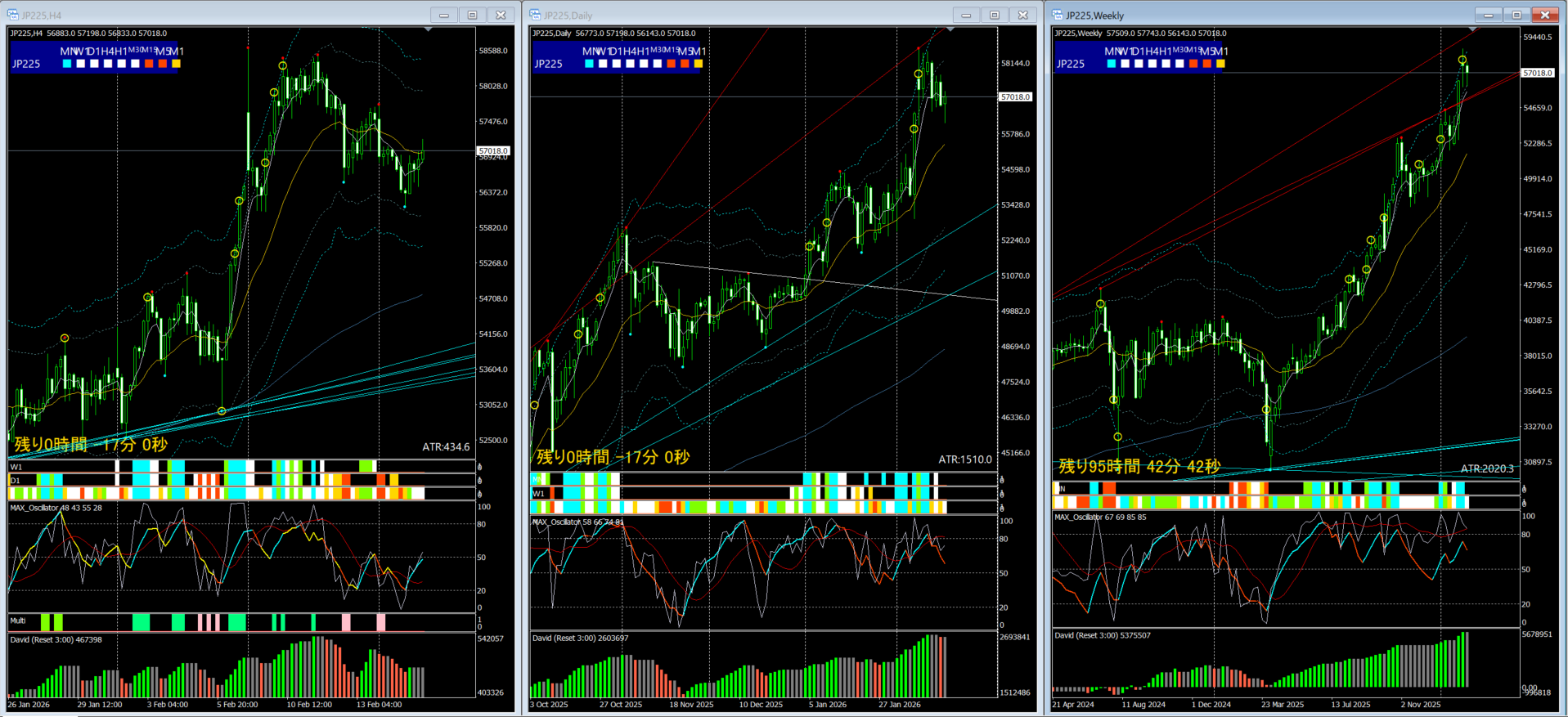 一方で、週足のMAXオシレーター、シンクロバンドは「中立」を示唆