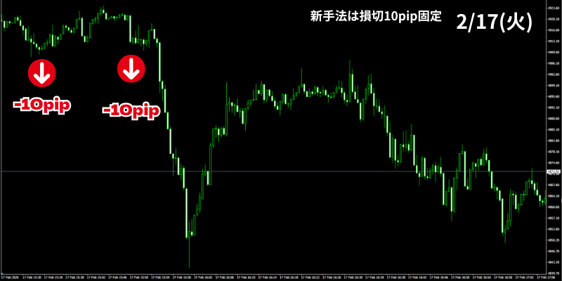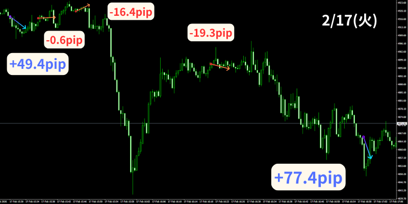 2月17日の「30秒足GOLDオートマチックFX」のトレード結果