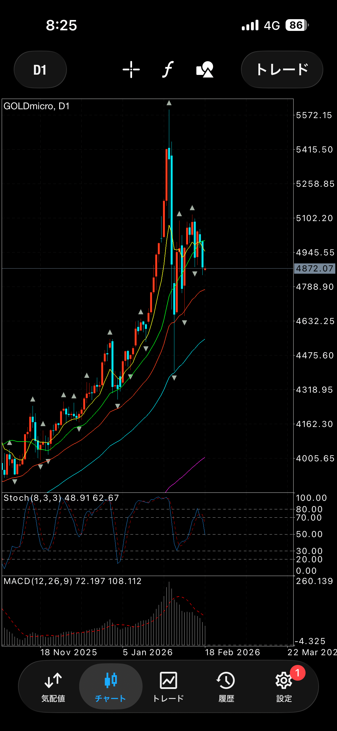 直前に出てた陽線の実体も下回り、20MAも割っているため、下目線が強くなったと思われます。