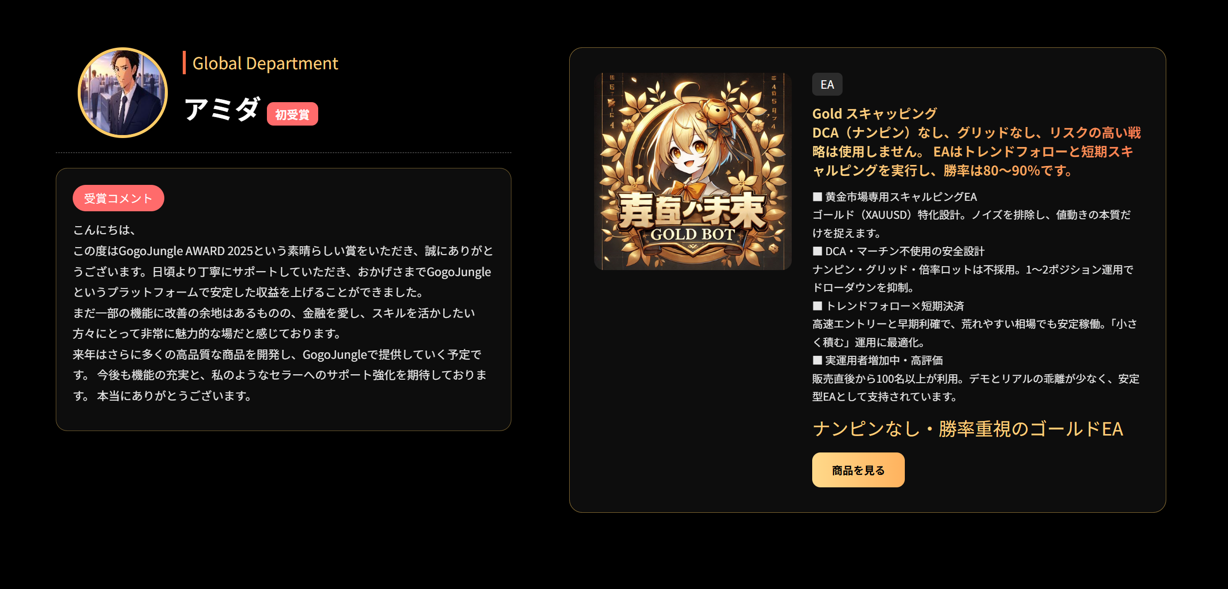 100名以上が稼働中、評価は5つ星のゴールドEA
