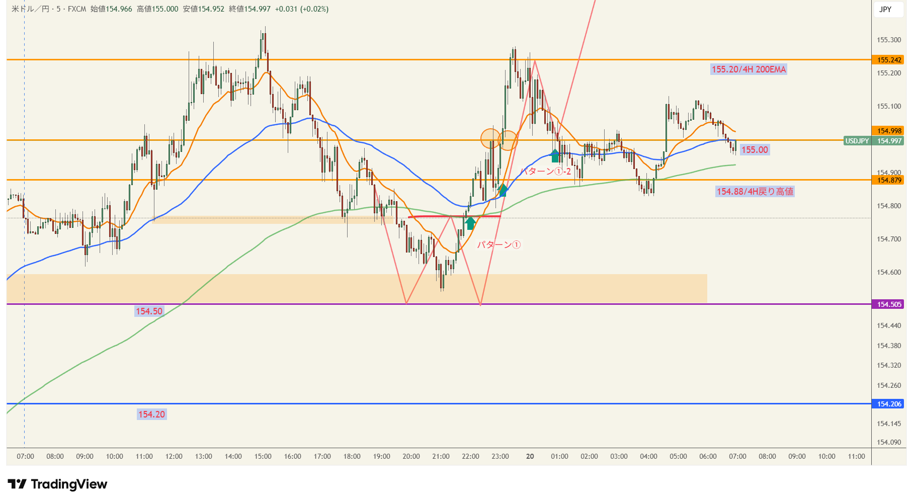 ゾーンは朝方、値動きの軌道の仮説は19時頃引いております。