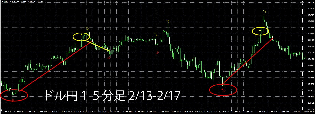 ドル15分足、ユーロドル15分足ではサインほぼなしでした!