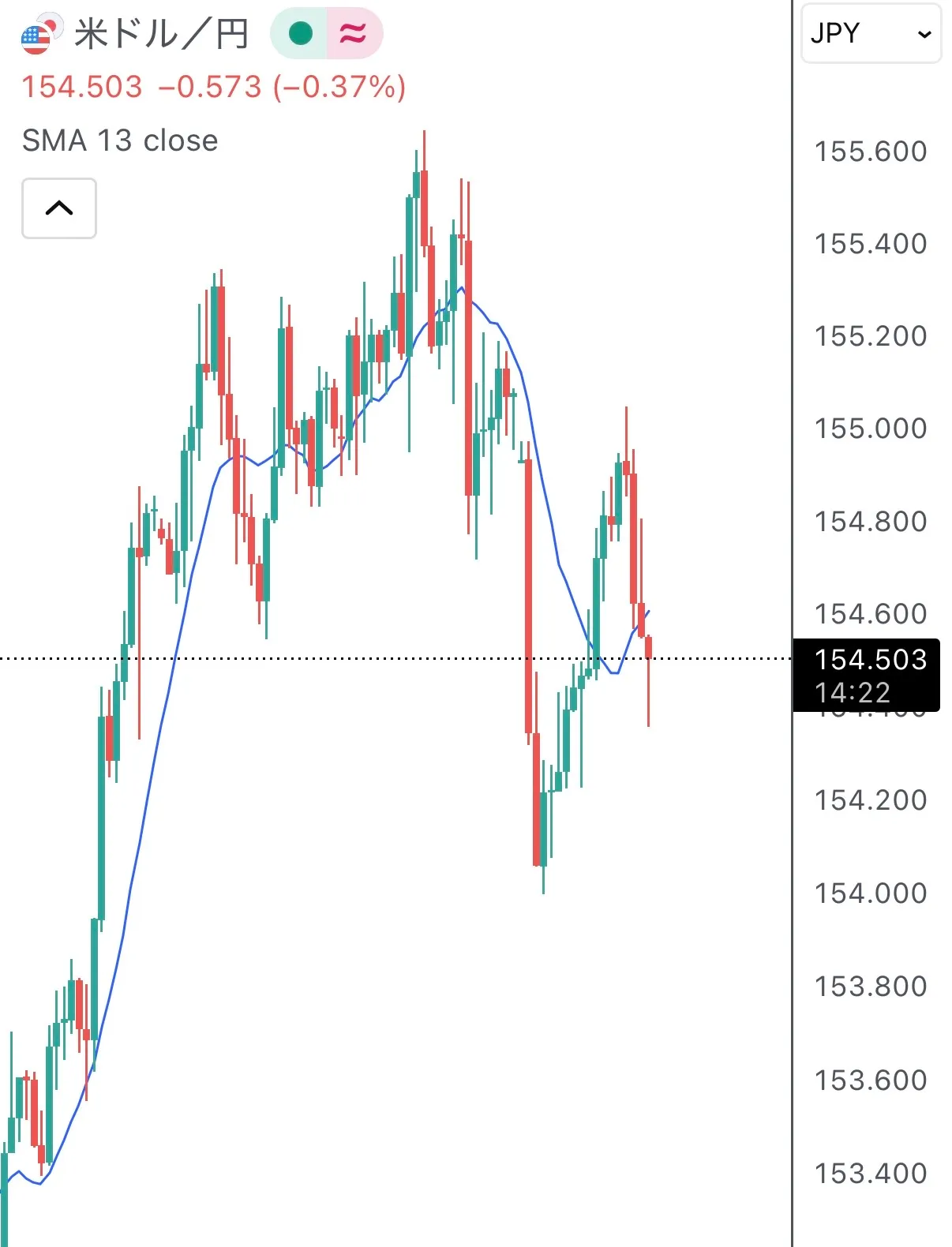 事前に「日足的に一旦押しが必要」と書いた通り、