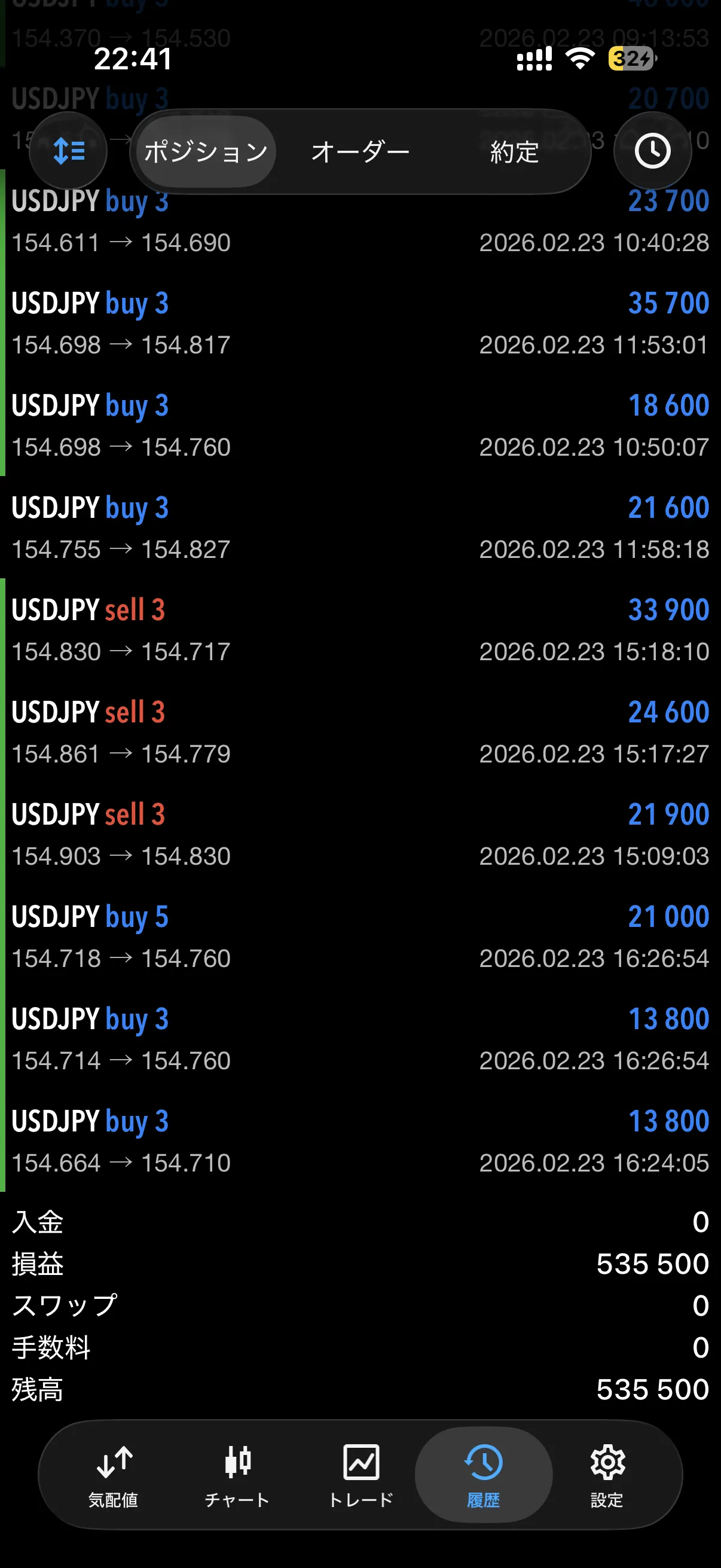 154円台で複数回エントリー。