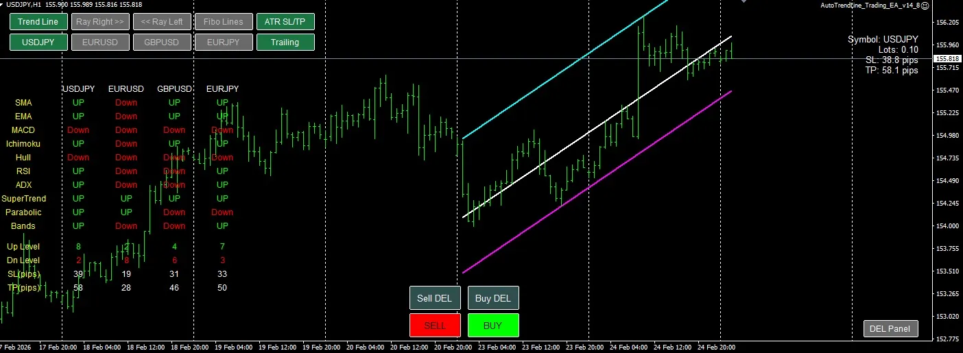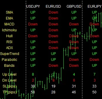通貨ペア別 インジケータパネル・SL/TP・UP/Dn Level 表示