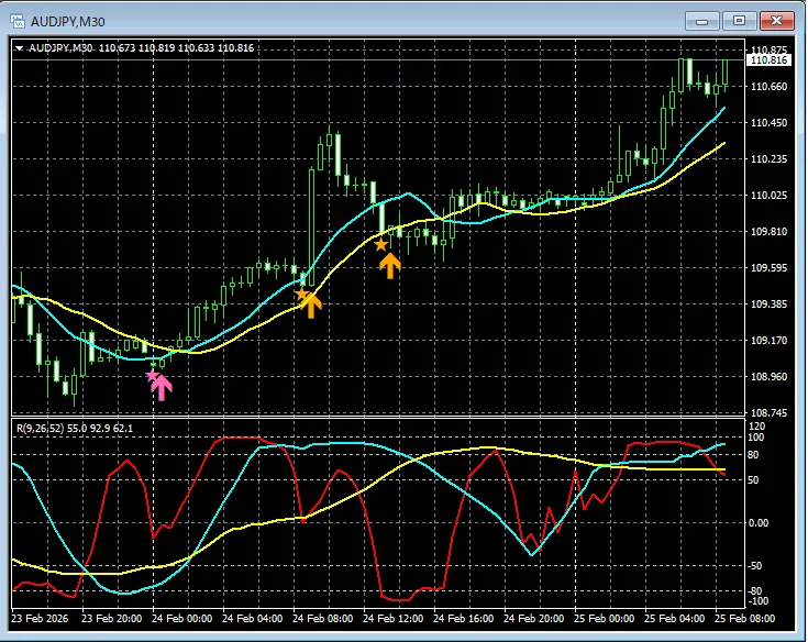 【RCIを極めて移動平均線フィルターで勝つ!!】豪ドル円 30分足 mBDSRのサイン