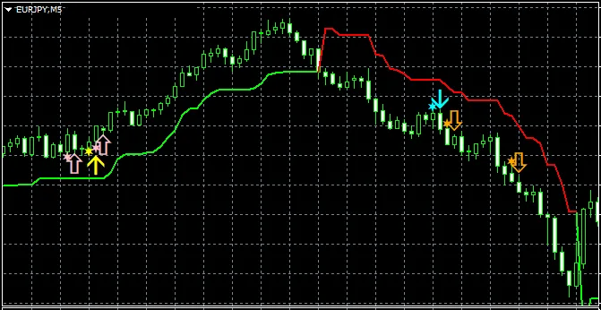 【スーパートレンドRCIで勝つ!!】ユーロ円 5分足 STRCIのサイン