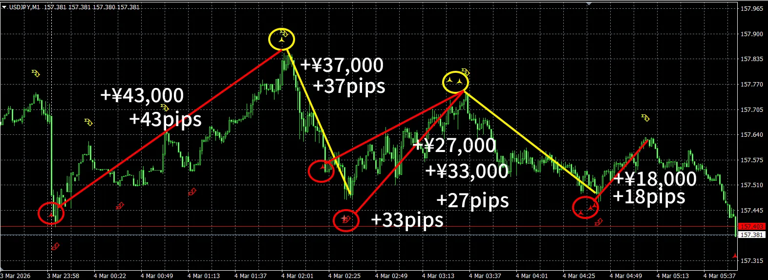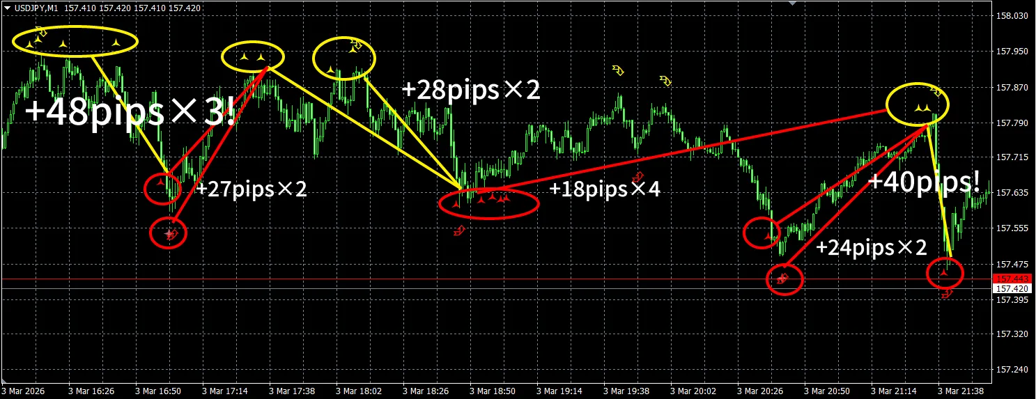 【現在の稼ぎポイント】1分足鬼スキャ 本日+¥158,000