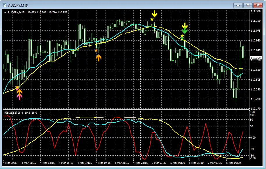 【RCIを極めて勝つ!! 】mBDSRのRCIフィルターと移動平均線フィルター(8) 豪ドル円 AUDJPY 15分足