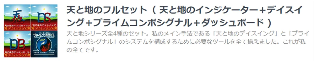 私が実際に運用している「天と地のデイスイング」そして「プライムコンボシグナル」この2つのシステムを構築するために必要なツールを一切の妥協なく、すべて揃えたフルセットです。バラバラのインジケーターではありません。一つの戦略として完成されたセットです。これが、私のトレードのすべてです。