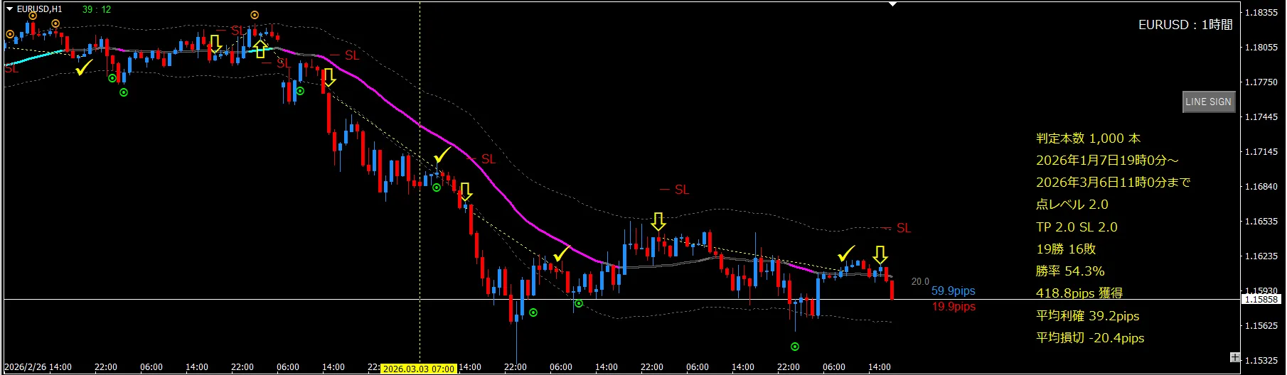 ユロドル(EURUSD) / 1時間足+4時間足+日足 過去検証