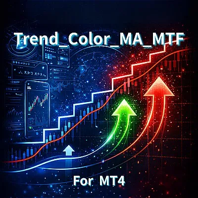 「Trend_Color_MA_Dual_MTF」は、あなたのトレードを一変させるために開発されました。このツールは単なる移動平均線ではありません。トレンドの方向を「色」で可視化し、チャンスが到来した瞬間に「音」と「通知」で知らせてくれる、あなたの専属アシスタントです。