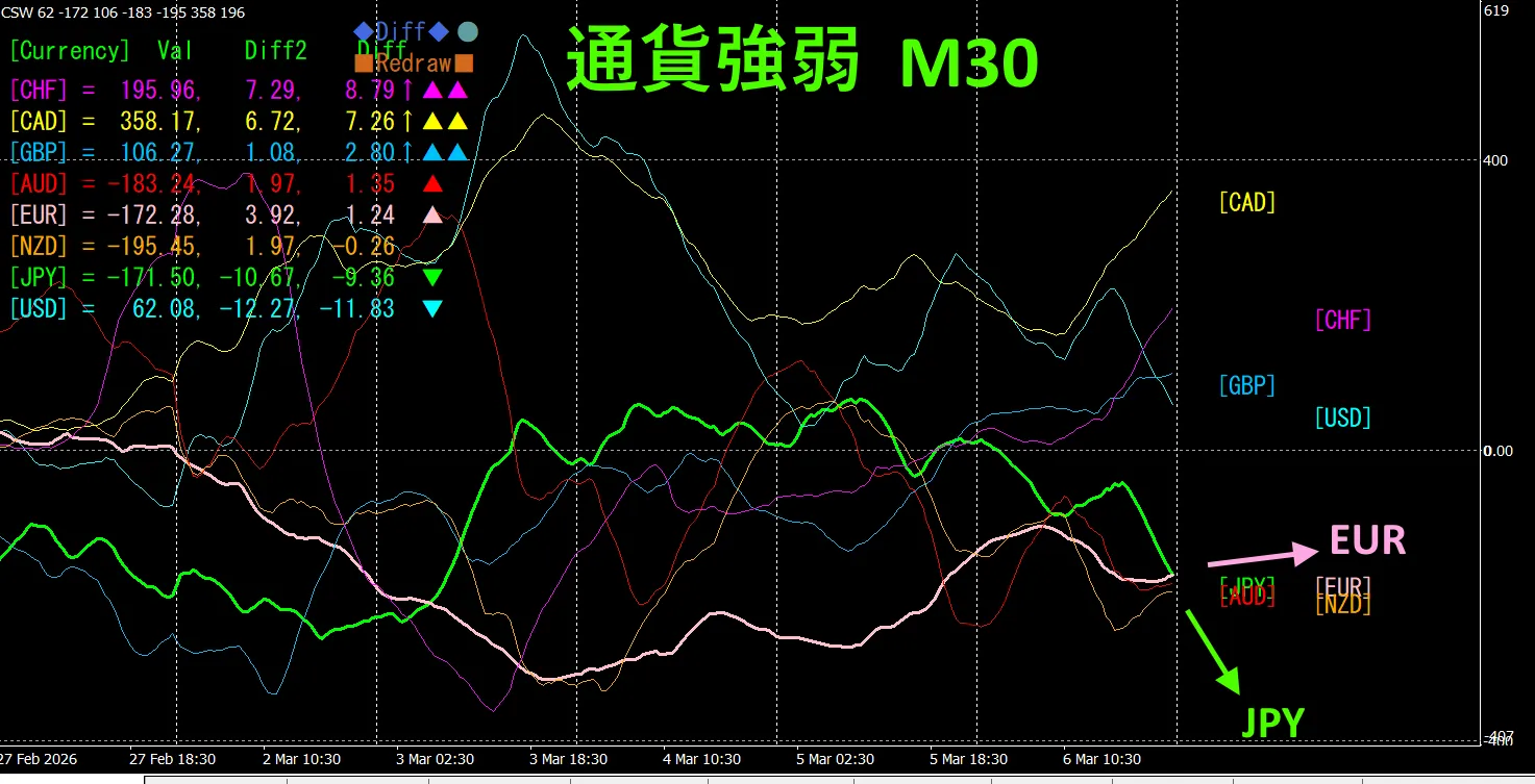 30分足の通貨強弱チャートです。