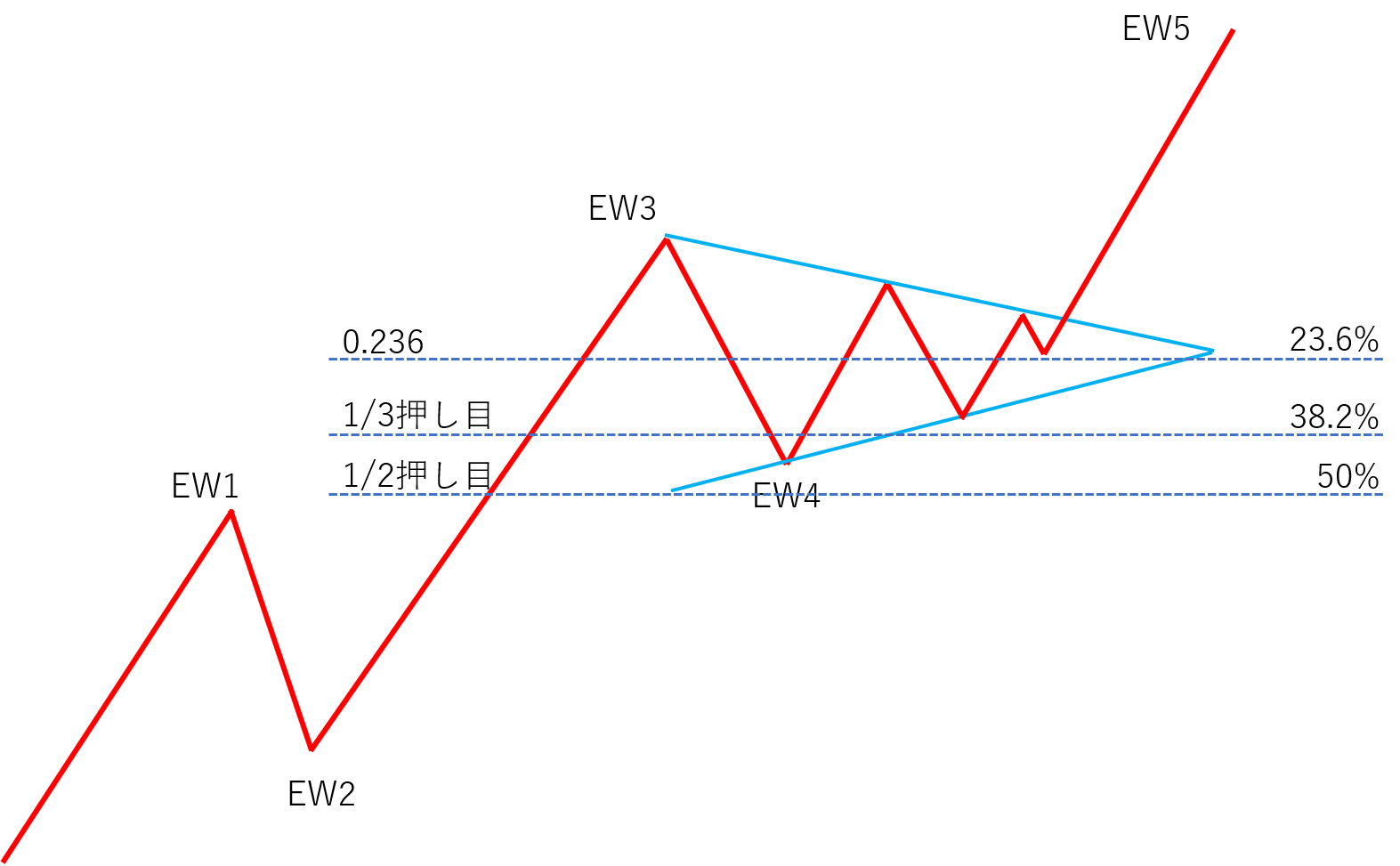 ※第3波が確定し、第5波目標レートがチャート上に表示された場面