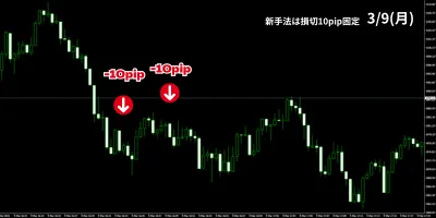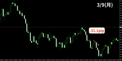 3月9日の「30秒足GOLDオートマチックFX」のトレード結果