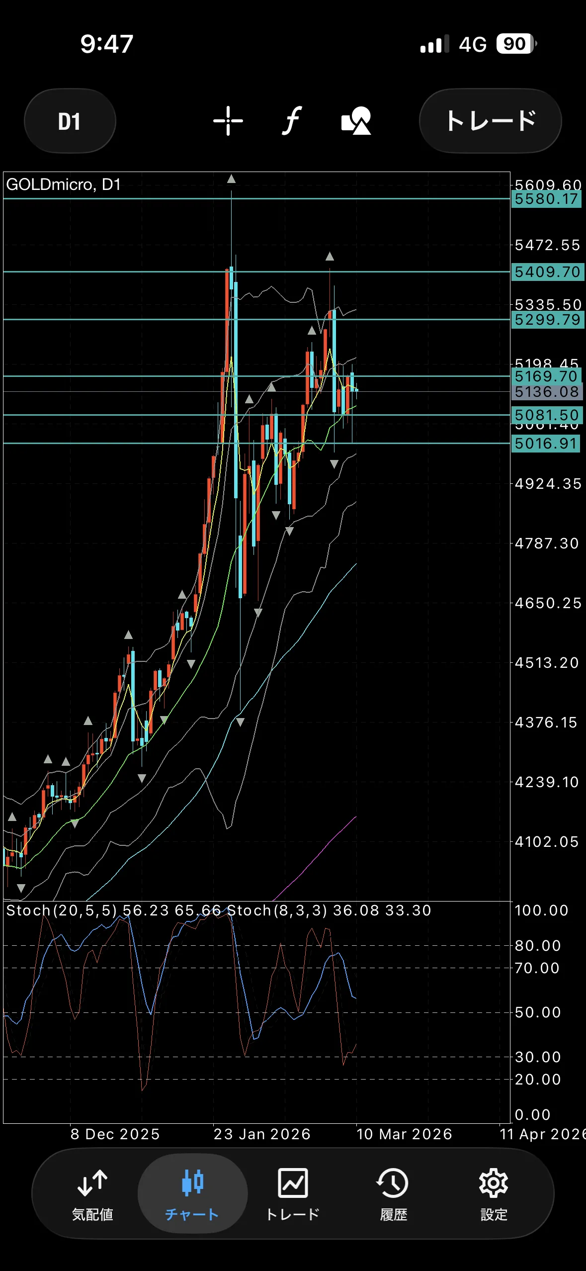 日足は短期ストキャスがヒドゥン、長期は上なので買われる待ちの印象。