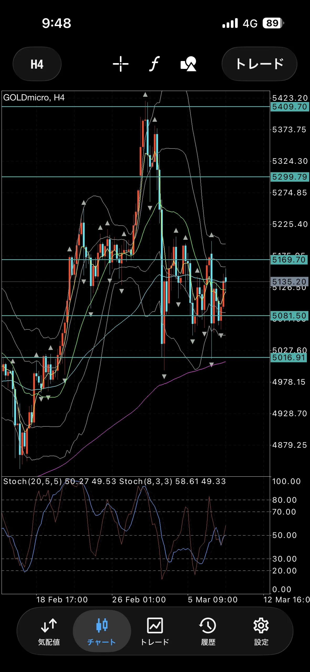 日足4時間足共にレンジです。