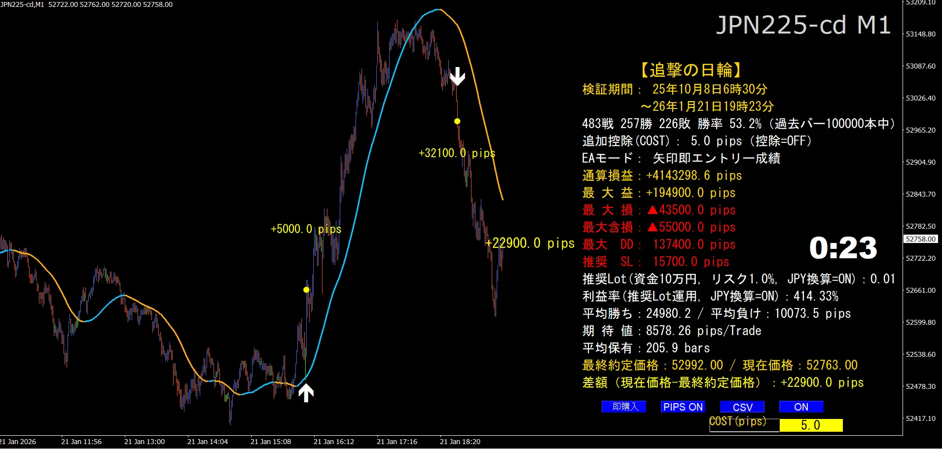 伸びる相場を追撃せよ!【追撃の日輪】★日経225専用★過去とリアル矢印が完全一致★