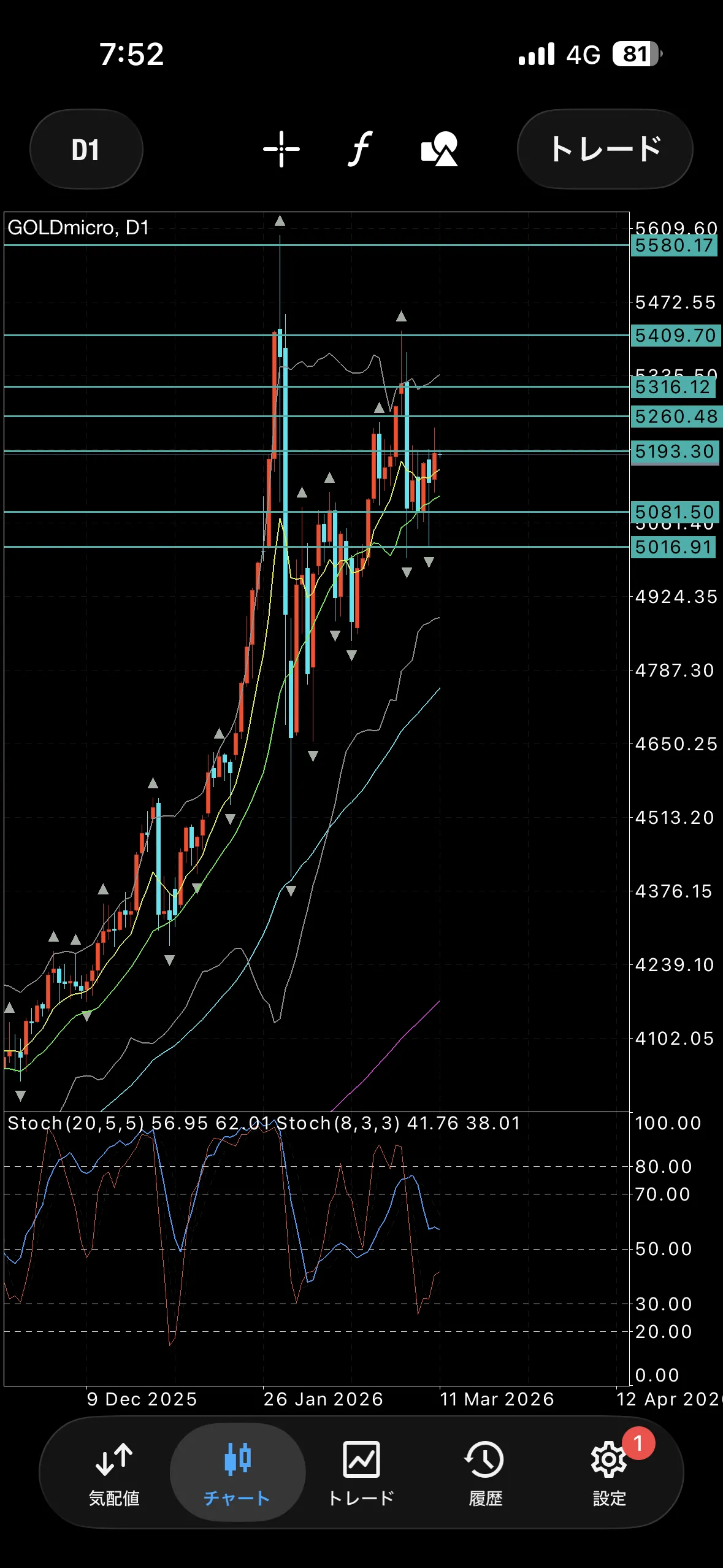 5261~5316まで買いを裏切った長い下ヒゲがあるため、ここでの値動きには注目したいところ。