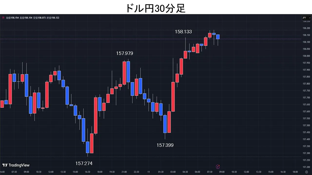 中東情勢を巡る報道を受け、ドル円は158円台に反発。