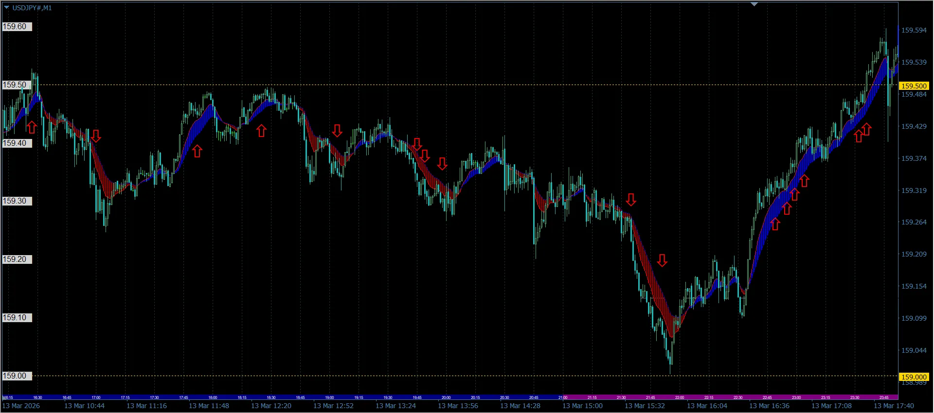※1日すべてのトレードポイントではなく、一定時間帯内の提示です。インジケーターも手法のものから一部消去