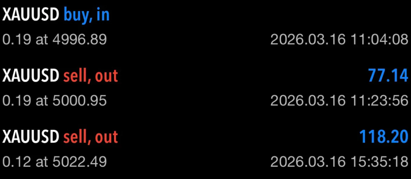 結論から言うと、本日(2026年3月16日)はGoldで+195.34ドルを取れました。